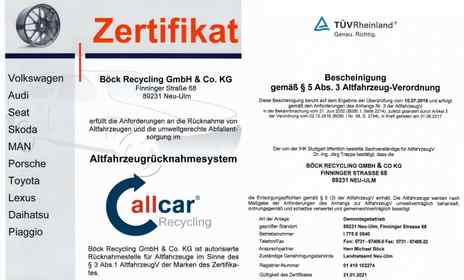 Über viele Jahre hinweg wurden wir daher von zahlreichen Herstellern für die umweltverträgliche Fahrzeugverwertung zertifiziert