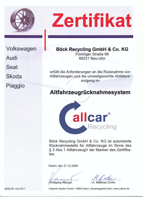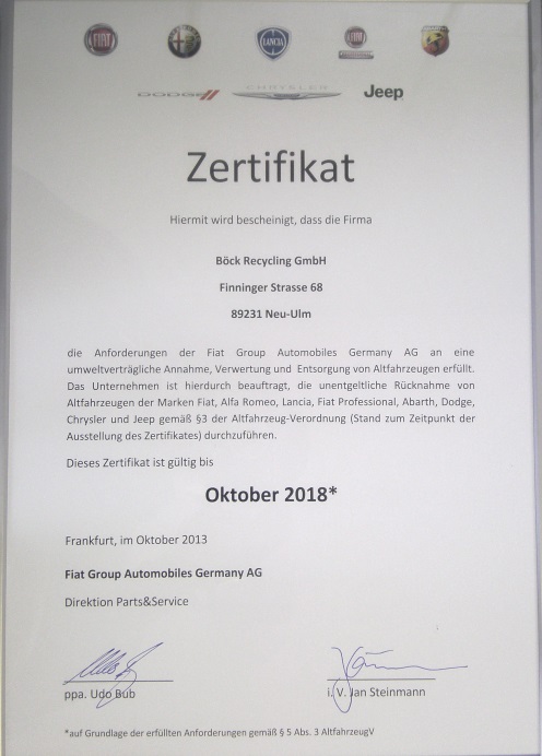 Über viele Jahre hinweg wurden wir daher von zahlreichen Herstellern für die umweltverträgliche Fahrzeugverwertung zertifiziert